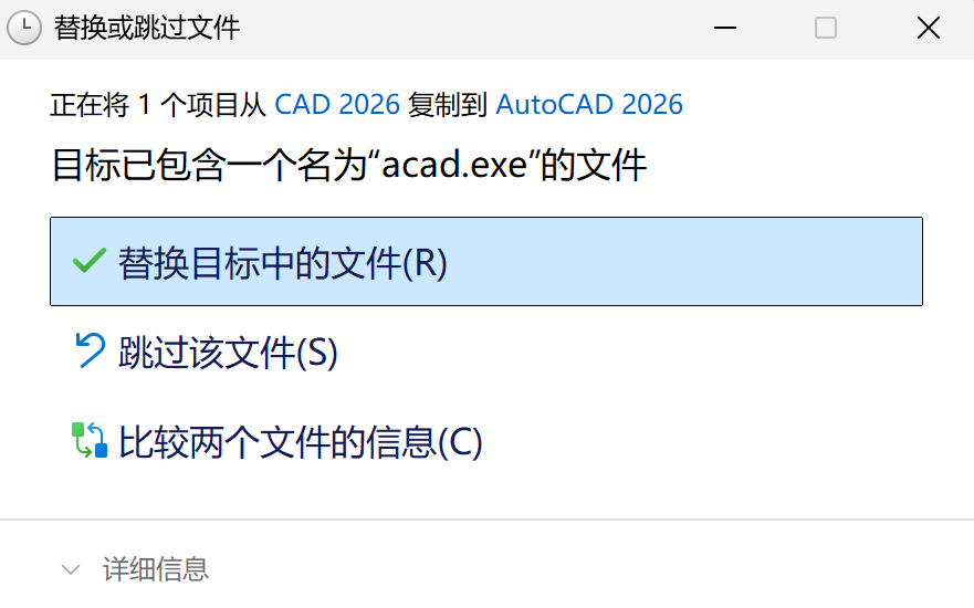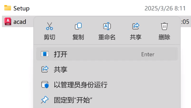 返回安装包,进入Crack文件夹,鼠标右击acad文件选择复制。
